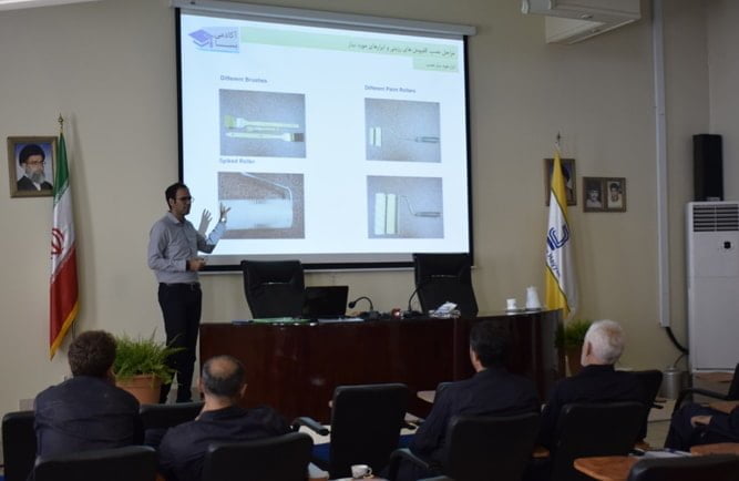 پس از مرحله تئوری، شرکتکنندگان به صورت عملی مراحل نصب سیستم کفپوشهای رزینی اپوکسی و آکریلات (کفپوش mma) مورد استفاده در صنایع دارویی را آموزش دیدند.