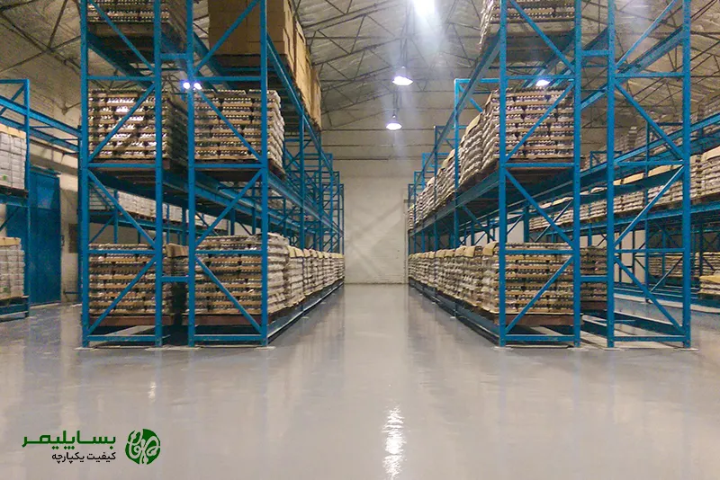 کفپوش انبار طراحی شده برای انبار داروسازی تولید دارو، از متریال کفپوش صنعتی بساپلیمر بود.