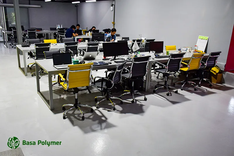 به دلیل کاربری سبک محل، کفپوش با ضخامت تقریبی 5/1 میلیمتر در مدت زمان 7 روز نصب گردید.